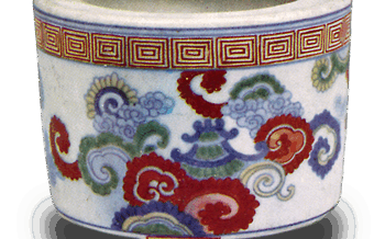 日本 色鍋島 色絵 唐草文 猪口 色鍋島 色絵 唐草文 猪口Wine cup with floral arabesque design. enamelled ware高さ6.7cm 口径5.9cm 高台径3.9cm 第53図と同形の猪... 2015.10.22 日本日本の陶滋鍋島