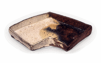 唐津 朝鮮唐津 向付 高さ3.2cm 口径10.2×21.8cm 高台径9.8×21.2cm 結文風に型抜きした大振りの平らな向付で、作行きはざんぐりしている。左右に藁灰釉と飴釉をかけ分けているが、混ざった部分は海鼠状に変化して美しい景をな […] 2013.09.16 唐津日本