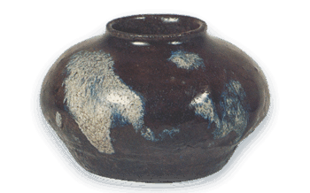 唐津 朝鮮唐津 耳付 花入 髙さ22.8㎝ロ径5.2㎝底径9.5㎝ 朝鮮唐津の花入や徳利のなかには、藁灰釉と飴釉をたっぷりとかけ分け、裾だけ土を見せた普通の作と別に、この作例のように二釉を振りかけるように、斑状に散したものが時々あります。赤思い照り […] 2013.06.25 唐津日本日本の陶滋日本陶滋全集花入
