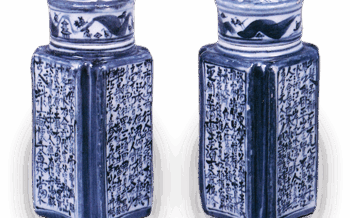 京焼 染付詩文四方入隅煎茶壺 染付詩文四方入隅煎茶壺Mokubei: square tea jars with fluted corners inscribed with poems, blue and whiteHeight 1... 2024.03.02 京焼日本日本の陶滋