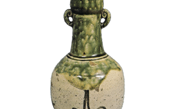日本 織部 耳付 杓立 織部 耳付 杓立Oribe Ladle stand with handles高さ19.4cm 口径5.4cm 胴径10.5cm 底径7.4cm おそらく仏花器として作られたものであろうが、大きさが乎頃... 2014.09.06 日本日本の陶滋織部