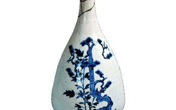 古伊万里 染付 松竹文 大徳利 染付 松竹文 大徳利高さ34.8cm 口径5.7㎝ 胴径18.4cm 底径11.1cm 頚部が破損しているが、裾の強く張った、力強い作振りの徳利である。粉引や飴釉のかかった李朝前期の徳利にこのような形... 2016.06.12 古伊万里日本日本の陶滋