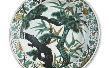 古九谷 色絵 松竹文 大皿 色絵 松竹文 大皿Large dish with pine-tree and bamboo design, enamelled wareMouth diameter 34.9cm高さ7.8cm 口径3... 2023.07.20 古九谷日本日本の陶滋
