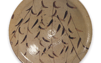 唐津 絵唐津 枝垂柳文 大皿 絵唐津 枝垂柳文 大皿高さ9.6cm 口径38.7cm 高台径11.0cm 梅沢記念館 これもまた数少ない大皿の一つで、やや厚手に無造作に轆轤びきされている。高台は小振りに削り出され、畳付は片薄である... 2013.08.20 唐津日本
