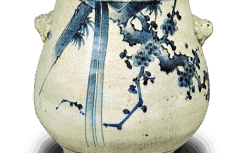 古伊万里 染付 梅樹飛鳥文 耳付 水指 染付 梅樹飛鳥文 耳付 水指高さ21.6cm 口径14.3㎝ 左右20.7cm 底径12.8cm やはり口回りは前図と同じ作行きであるが、胴をふくらませ、裾をすぼめた独特の器形である。左右に鬼面風の耳... 2016.06.25 古伊万里日本日本の陶滋