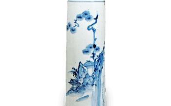 古伊万里 染付 楼閣 山水文 掛花生 染付 楼閣 山水文 掛花生高さ23.0cm 口径6.2cm 底径5.8cm おそらく掛花生として作られたものと思われ、背面に釘をつけて掛花生にしている。頚部に四方筰文、胴には山水文をあらわしているが、... 2016.06.20 古伊万里日本日本の陶滋
