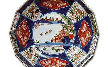 古九谷 染付 楼閣 人物文 八角 手鉢 染付 楼閣 人物文 八角 手鉢Octagonal bowl with handle across mouth, with design of figures inpavilion, blue and ... 2023.09.26 古九谷日本日本の陶滋