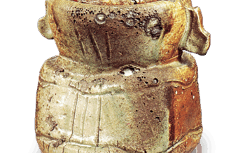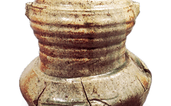 伊賀 伊賀擂座重餅形水指 伊賀擂座重餅形水指Water jar ol kasanemochi shape with row of bosses Height 22.6cm Hatakeyama Kinen-kan Museum... 2019.03.09 伊賀日本日本の陶滋水指