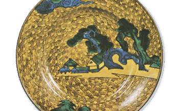 古九谷 色絵 浜松 家屋文 大皿 色絵 浜松 家屋文 大皿Large dish with design of seashore with pine-trees and houses,enamelled ware Mouth diame... 2023.08.07 古九谷日本日本の陶滋