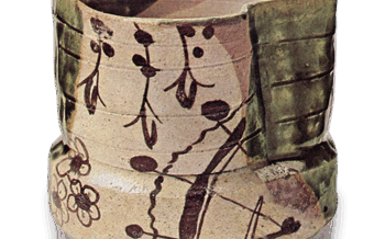 日本 織部 蕨梅花文 火入 織部 蕨梅花文 火入Oribe Hiire bowl with bracken and plum blossom design高さ11.8cm 口径5.7×7.2cm 底径 6.0×7.3cm萬野美術... 2014.08.13 日本日本の陶滋織部