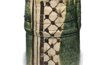 日本 織部 理路水車文 火入 織部 理路水車文 火入Oribe hiire (small charcoal brazier) with Buddhist jewel string and water-mill design高さ9.... 2014.05.16 日本日本の陶滋織部