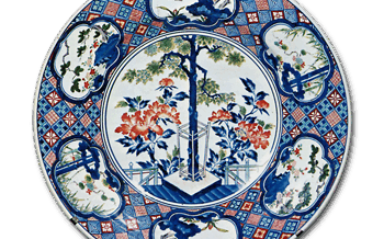 古伊万里 色絵 牡丹樹木文 大皿 色絵 牡丹樹木文 大皿高さ11.8cm 口55.7cm 底径27.5cm この種の作例のなかでは稀に見る大作で、近年ヨー口ヅパから請来されたものである。見込円窓内には中央に樹木をあらわし、その左右に牡... 2016.08.05 古伊万里日本日本の陶滋