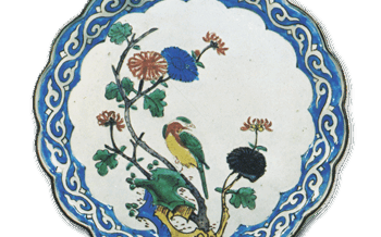 古九谷 色絵 松竹梅 鳥文 扇面形 皿 色絵 松竹梅 鳥文 扇面形 皿Fan-shaped dish with design of pine-tree, bamboo, plum-tree and bird,enamelled wareMo... 2023.09.03 古九谷日本日本の陶滋