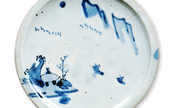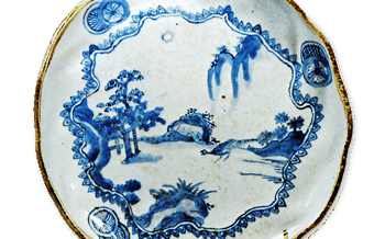古伊万里 染付 柴垣文 軍配形 皿 染付 柴垣文 軍配形 皿高さ3.8cm 口径20.7×24.1cm 底径13.3×16.4cm 前図とまったく同種の皿であるが、この皿は器形を軍配形にしている。やはり瑠璃地に白抜きで日輪、濃い染付で月... 2016.05.24 古伊万里日本日本の陶滋