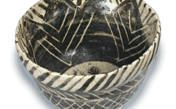 日本 黒織部茶碗 銘 冬枯 黒織部茶碗 銘 冬枯黒織部茶碗 銘 冬枯所蔵:徳川美術館高さ:8.6~9.5cm口径:9.7~10.0cm高台外径:5.5cm同高さ:0.9cm 織部には青織部・鳴海織部・赤織部・黒織部・織部黒・絵織... 2020.05.31 日本日本の陶滋織部茶碗茶碗 平凡社茶道美術鑑賞辞典