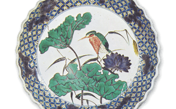 古九谷 色絵 翡翠文 輪花 大皿 色絵 翡翠文 輪花 大皿Large dish in the shape of open flower with lotus and kingfisher design,enamelled wareMo... 2023.07.03 古九谷日本
