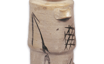 唐津 朝鮮唐津 耳付 花入 朝鮮唐津 耳付 花入高さ18.5cm 口径8.0cm 左右12.7cm 底径9.0cm出光美術館 朝鮮唐津には藁灰釉と黒釉をくっきりとかけ分けたもののほかに、この花入のように素地膚の上に白黒の釉を筆で... 2014.03.25 唐津日本日本の陶滋