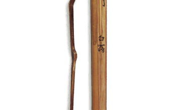 茶杓 金森宗和 茶杓 共筒銘ま小舟 金森宗和 茶杓 共筒銘ま小舟平瀬家伝来茶杓これは竹そのものが青味ある白竹で、宗和の物好きから極端な二段撓めをしているので、あたかも釣針のような形になっている。筒真削りで、底部に二か所窠穴がある。面取っ... 2025.11.14 茶杓茶道美術全集