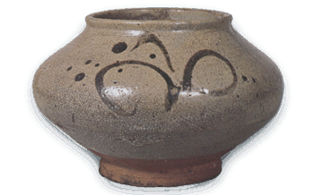 唐津 絵唐津 草文 壺 高さ11.0cm 口径11.9cm 胴径14.8cm 底径6.2cm 端反りの口が広く、高台は高く小振りに削り出された珍しい形の壷で、胴には草と丸文を交互に描いているが、いかにも唐津らしい素朴な筆触である。これも市ノ瀬高 […] 2013.12.04 唐津日本日本の陶滋