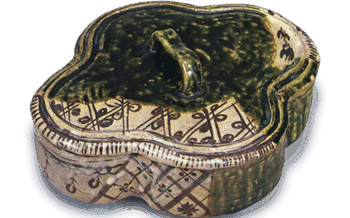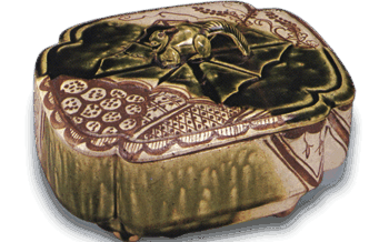 日本 織部 木瓜形 蓋物 織部 木瓜形 蓋物Oribe Covered box in shape of quatrefoll高さ11.0cm 口径21.5×25.0cm 木瓜形蓋物の優作らしいが、残念ながら手にしていないので、... 2014.09.27 日本日本の陶滋織部