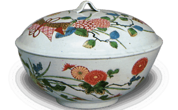 古伊万里 色絵 花包文 蓋物 色絵 花包文 蓋物通蓋高16.0cm 身高9.9cm 口径22.9cm 高台径10.1cm岡山美術館 甲盛りの豊かな張りのある器形の蓋物で、柿右衛門手にも同種のものが見られる。このような器形の蓋物も延... 2016.09.10 古伊万里日本日本の陶滋