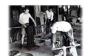 染物屋が用いる水に藍を溶かした液を貯蔵する瓶。常滑焼の赤瓶が最も多く用いられ、藍壺ともいいます。(塩田力蔵)