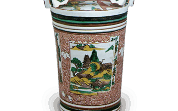 古伊万里 色絵 山水文 角桶 色絵 山水文 角桶高さ24.6cm 口径13.7cm 左右16.1cm 底径10.1cm 俗に角桶と称している樽形の器で、おそらくワインボトルとして輸出されたものであり、近年、ヨーロッパより請来された... 2016.08.21 古伊万里日本日本の陶滋