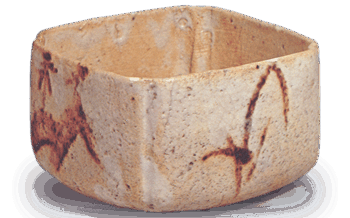志野 志野 遠山文 向付 志野 遠山文 向付Shino mukozuke bowl with mountain designDiameter 8.7cm高さ8.1cm 口径8.1×8.7cm 底径4.8cm 四方入隅、碁笥底式... 2014.01.08 志野日本日本の陶滋
