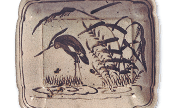 志野 志野 芦鷺文 額皿 志野 芦鷺文 額皿Shino rectangular dish with reed and heron designLength 16.7cm高さ3.1cm 口径16.7cm 四脚 芦と鷺の文様が大き... 2013.12.30 志野日本日本の陶滋