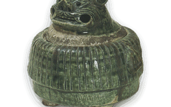 日本 織部 獅子 香炉 織部 獅子 香炉Oribe Incense 'burner with cover surmounted by shfsM (lion)-shaped knob高さ12.5cm 獅子の頭部をあらわした蓋... 2014.08.08 日本日本の陶滋織部