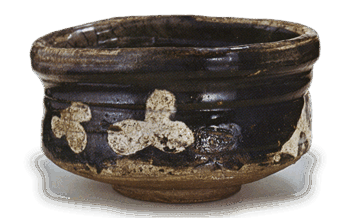 日本 黒織部 三葉文 沓茶碗 黒織部 三葉文 沓茶碗Black Oribe 'Shoe'-shaped tea bowl with trefoil design. Kuro-Oribe口径11.2×13.9cm 黒釉を掻き落として... 2014.06.21 日本日本の陶滋織部茶碗