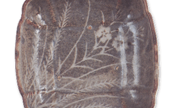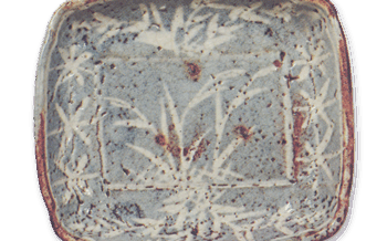 志野 鼠志野 草文 向付 鼠志野 草文 向付Gray Shino mukozuke dish with grass designDiameter 15.1cm高さ5.4cm 口径14.9×15.1cm 三脚 四方の隅がかなり鋭... 2014.02.09 志野日本日本の陶滋