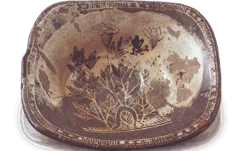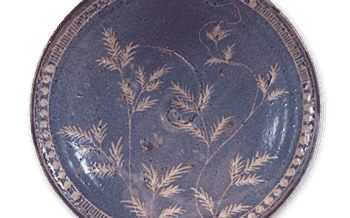 志野 鼠志野 草文 大鉢 鼠志野 草文 大鉢Gray Shino large bowl with grass designDiameter 29.8cm高さ7.4cm 口径29.8cm 三脚 萬野美術館 ゆったりと轆轤びきされ... 2013.11.22 志野日本日本の陶滋